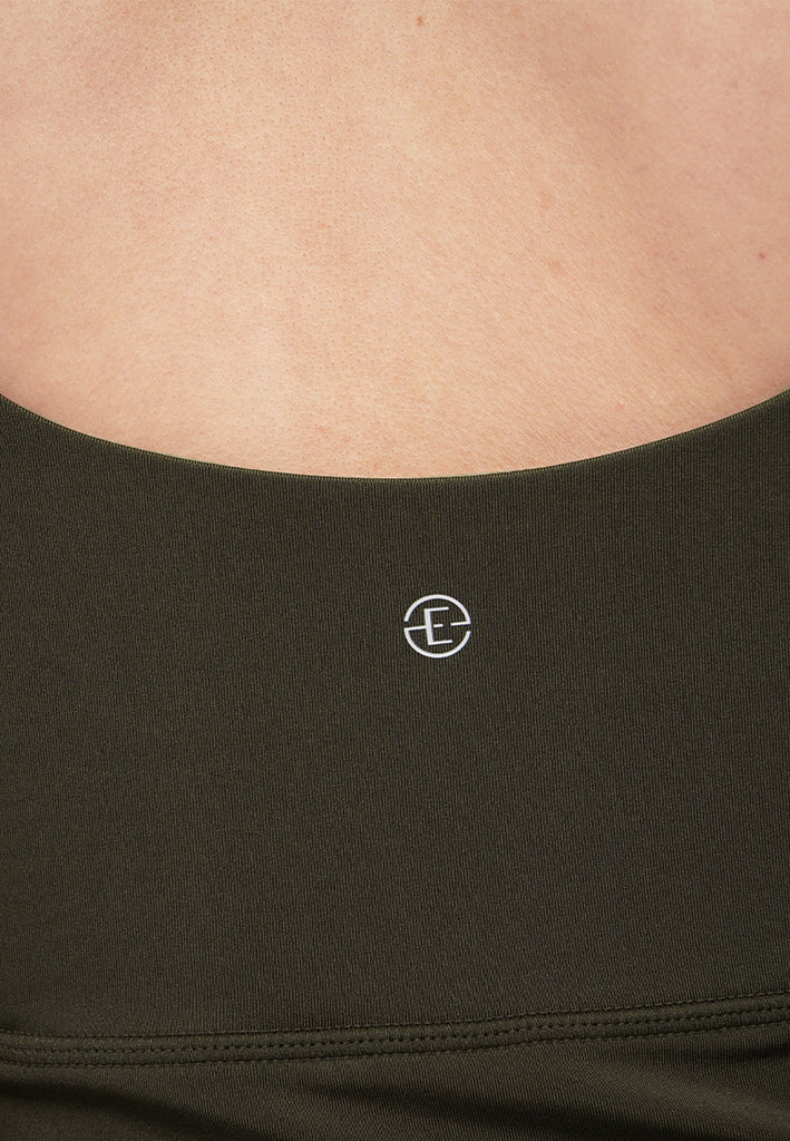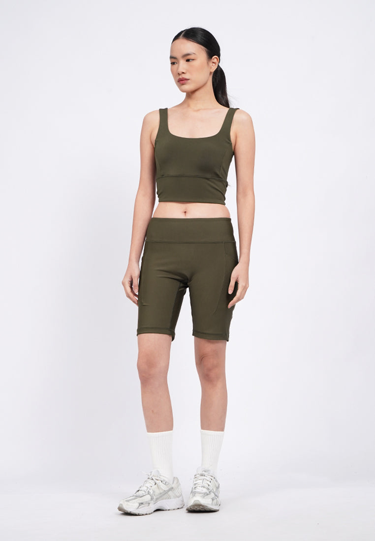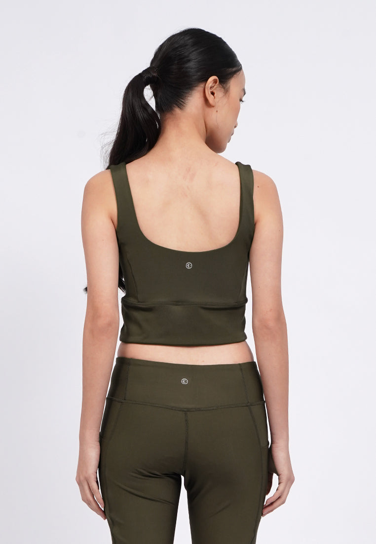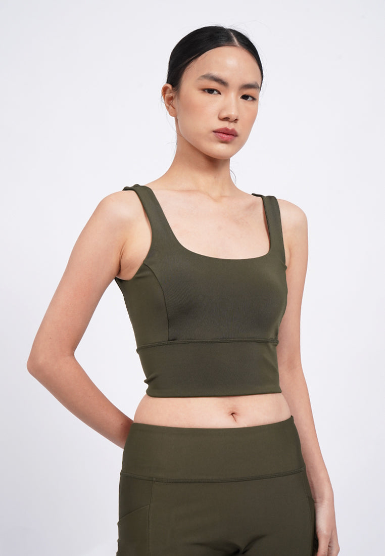 Sports bra top, Square neck, Quick dry fabric, Detail logo di bagian belakang, Material: Poly Spandex, Fit: Fitted, Color: Chocolate, Model info: Model Wearing Size S, Height: 168cm, Bust: 74cm, Waist: 62cm, Hips: 86cm