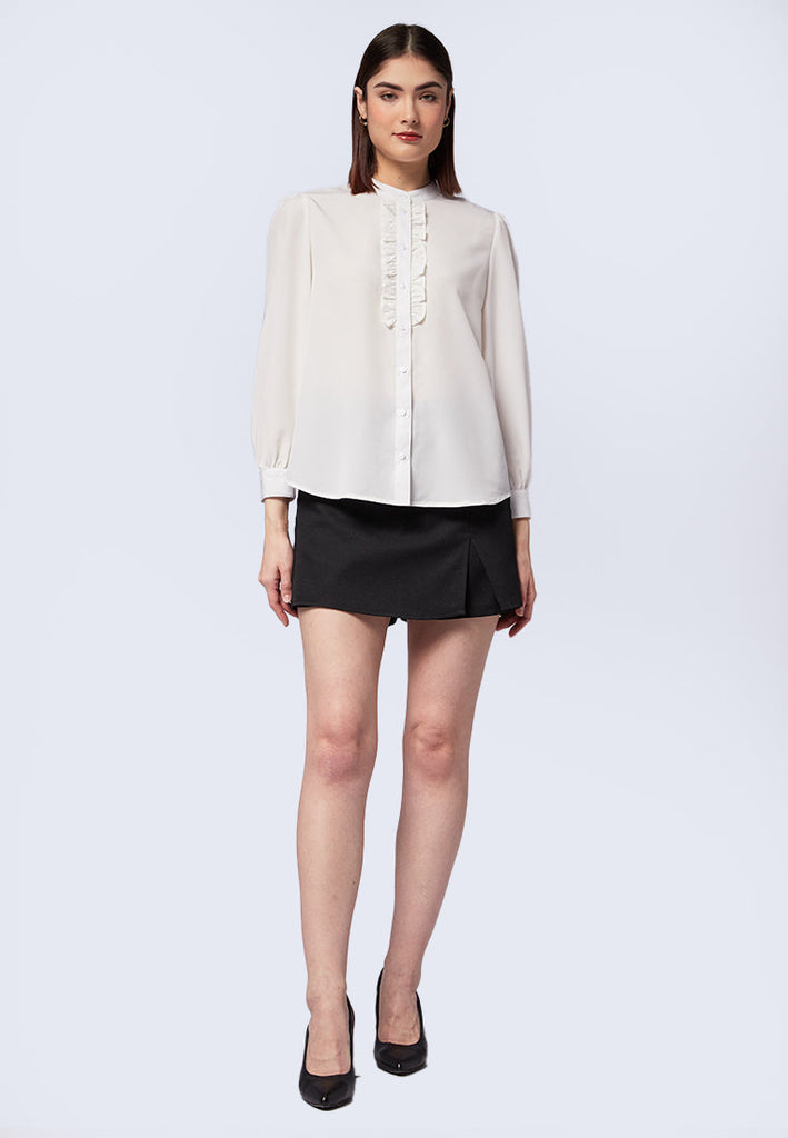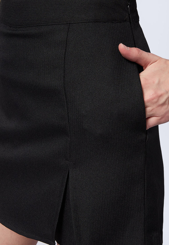 Basic mini skort, Front slit details, Side zipper opening, Material: Herringbone, Fit: Regular, Color: Black, Model info: Model Wearing Size S for Top, Size 25 for Pants, Model Height 175 cm, Bust: 84 cm, Hips: 90 cm, Art: 5-SKWKSG124B044