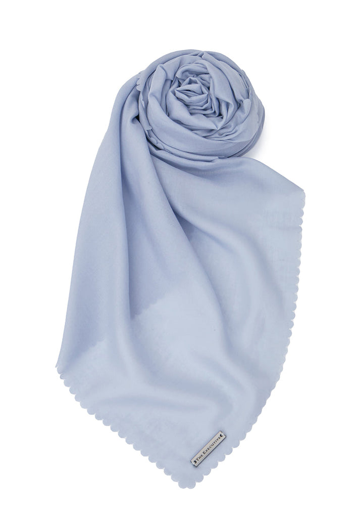 Scarf segiempat laser cut finishing, PxL = 115x115cm, Material: Polyester 100%, Color: Light Blue, Art: 5-SVWCFO122C009